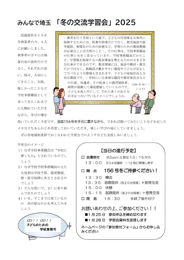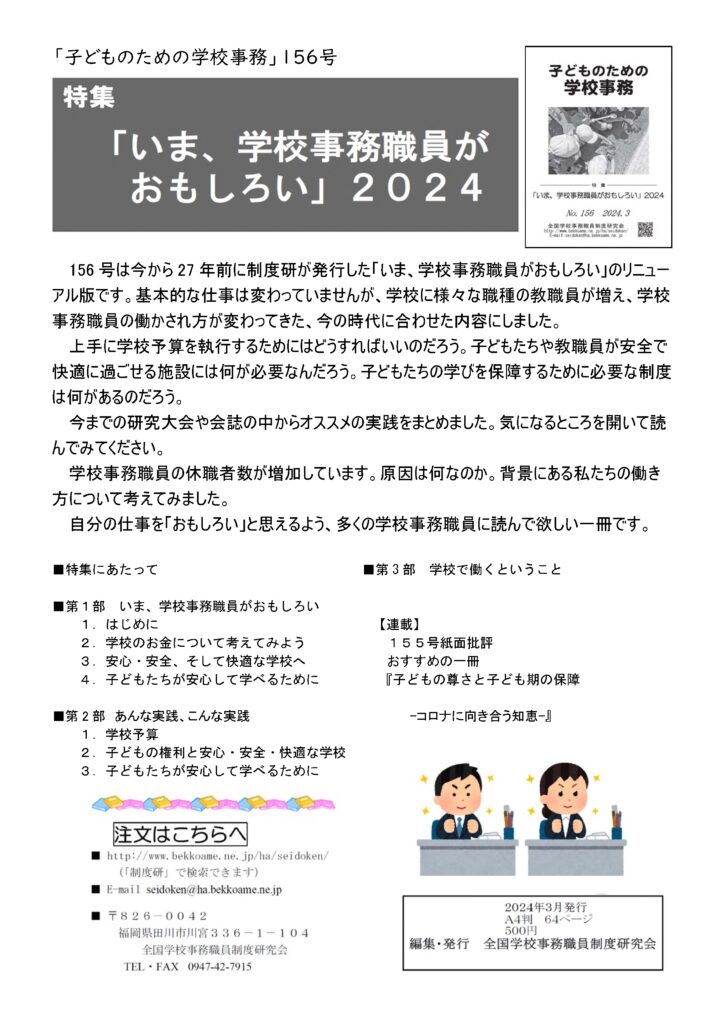 昨年発行した会誌156号を資料として学校事務職員の今に迫る内容となっています