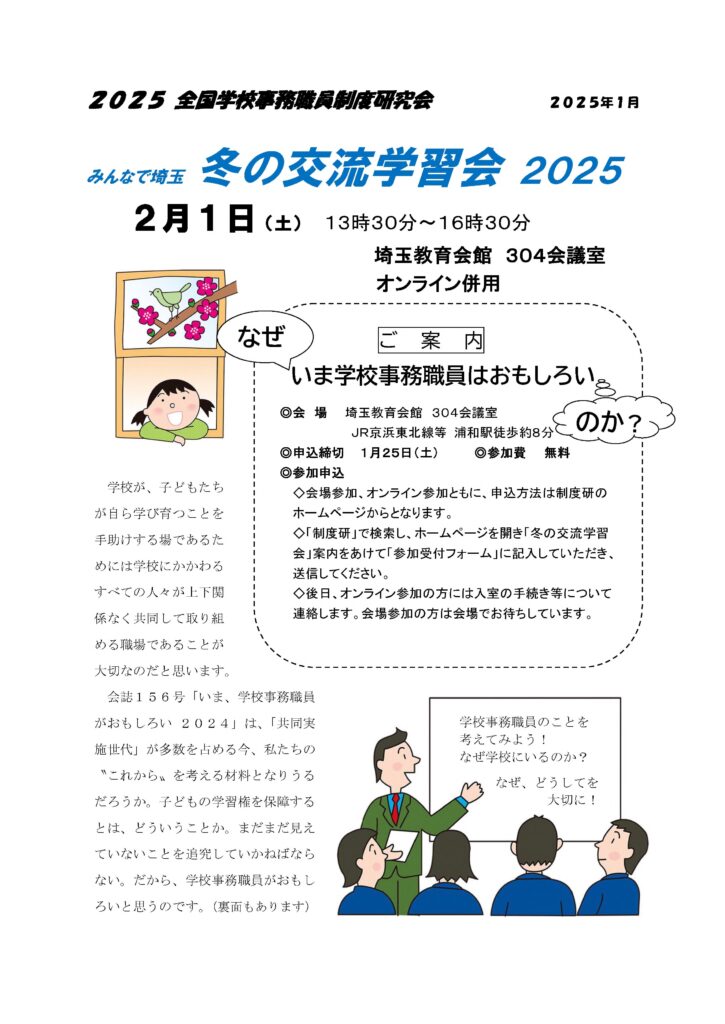 毎年開催している冬の交流学習会を2025年2月1日(土)に行います